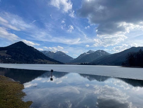 Erik and I spent the weekend (Friday night until this morning) an hour outside the city in Schliersee. His company owns a little hotel near there that employees can stay for free/cheap. We went back in October 2024, just as autumn was taking over the scenery. It was fun to go now, on the cusp of spring. Sadly the trees were still bare and the lake mostly frozen, but yesterday was very sunny and pleasantly warm—I could wear a light jacket and feel perfectly comfortable.