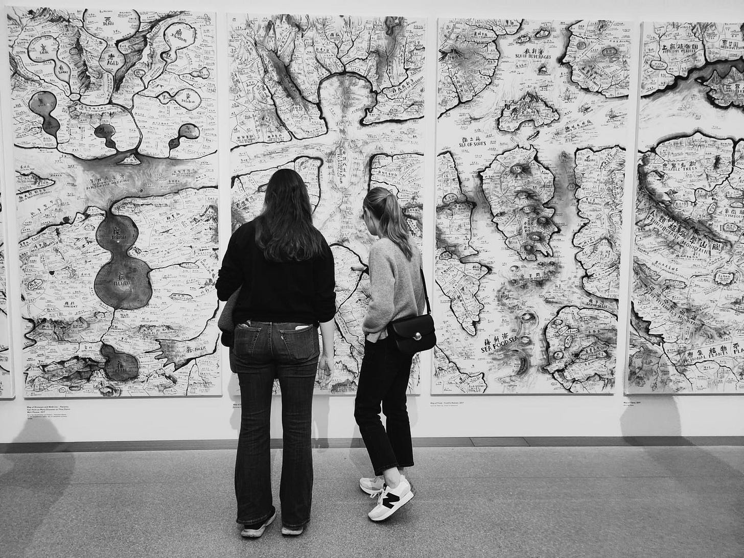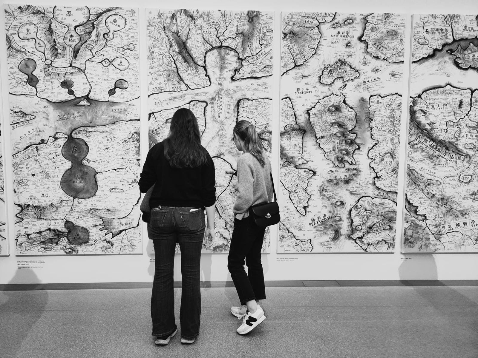 Today, I met with M and J at the Pinakothek der Moderne (modern art museum) which was great as I had never been there before. Despite growing up in Munich, both M and J hadn’t visited the museum in a while either. Modern art can be hit or miss for me, but I really loved their collection. They had an exhibit “Sweeter than Honey” which was a collection of scriptural and text-based art. Looking at how words and language can be art—which felt like the perfect exhibit for us, who all met in my English class two years ago! Our favorite pieces were from Chinese artist Qiu Zhijie’s “World Maps.” I took many videos and plan to immortalize this outing in my Alphabet Challenge vlog series.